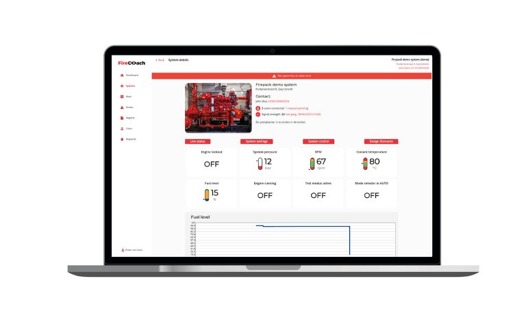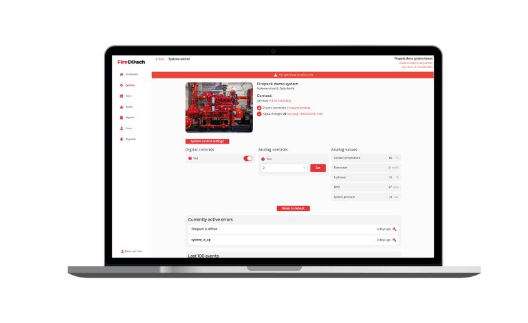 Met Firecoach kan je op afstand je sprinklerinstallatie testen. Op deze manier kan je personeel efficiënter inzetten. Met een virtueel controle paneel zijn sprinklerinstallaties eenvoudig te testen. Van het starten van de motor tot het openzetten van regelkleppen.