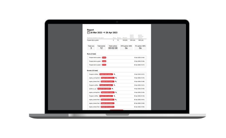 Firecoach is 24/7 verbonden met je sprinklerinstallaties. Verrassingen worden op deze manier uitgesloten. Firecoach maakt het mogelijk om rapportages te maken en te downloaden. Je genereert een maandrapportages met slechts een druk op de knop. Het online dashboard geeft een optimaal beeld van de prestatie van je Firepacks.